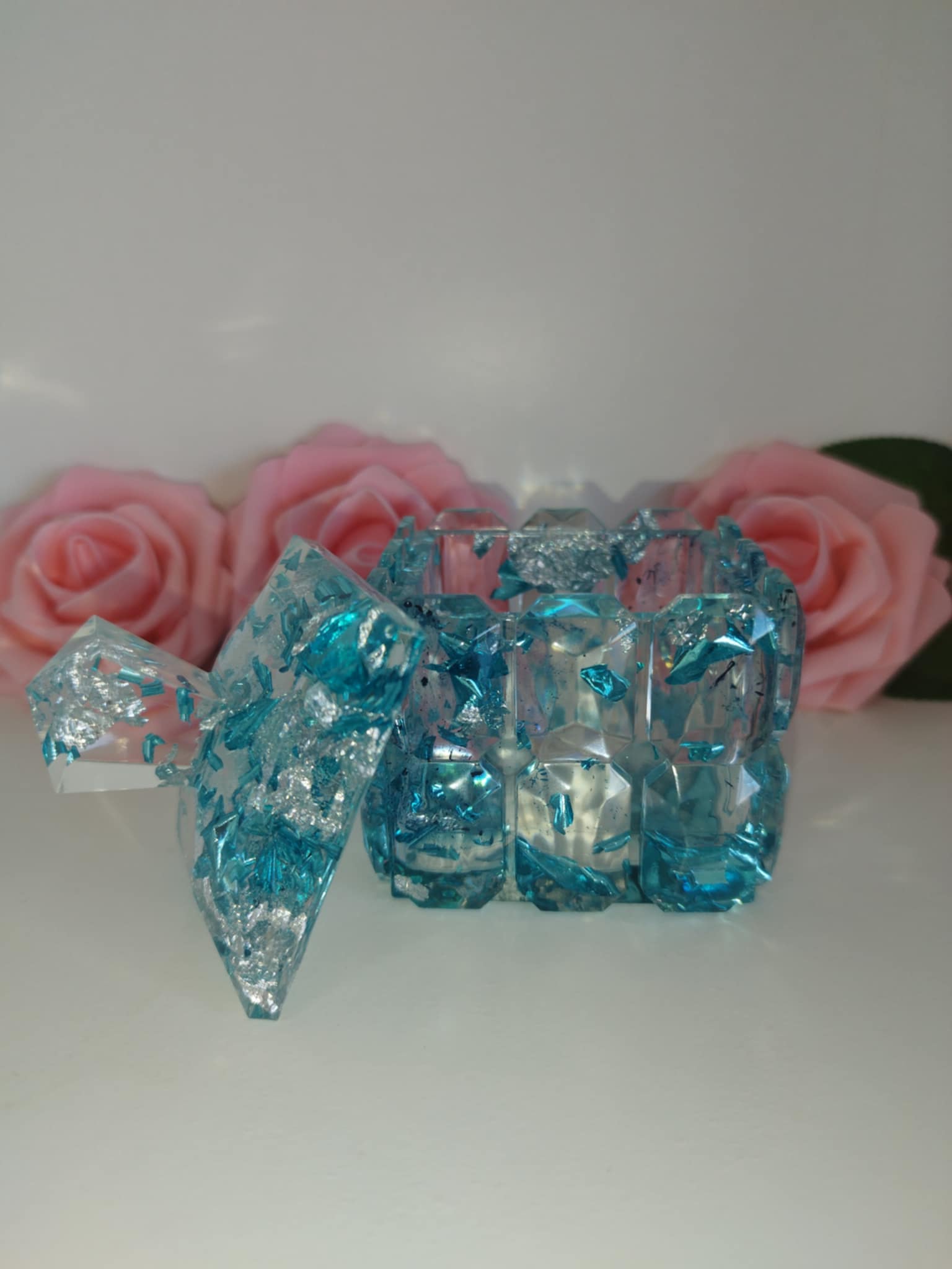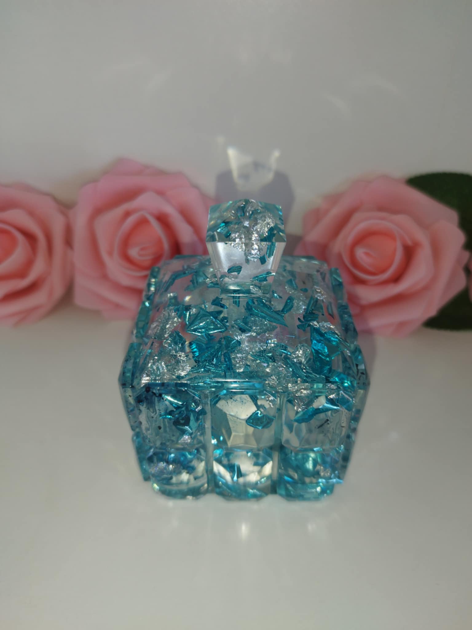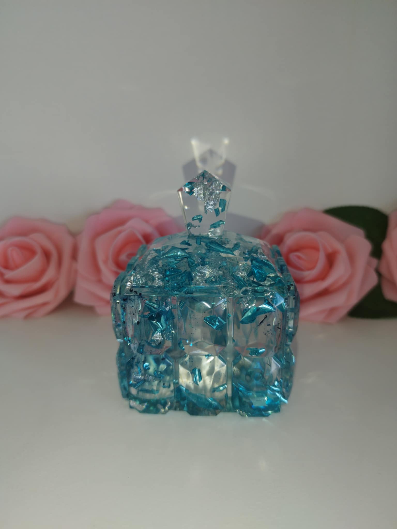6,5 cm de coté sur 8,5 cm environ de hauteur couvercle compris
