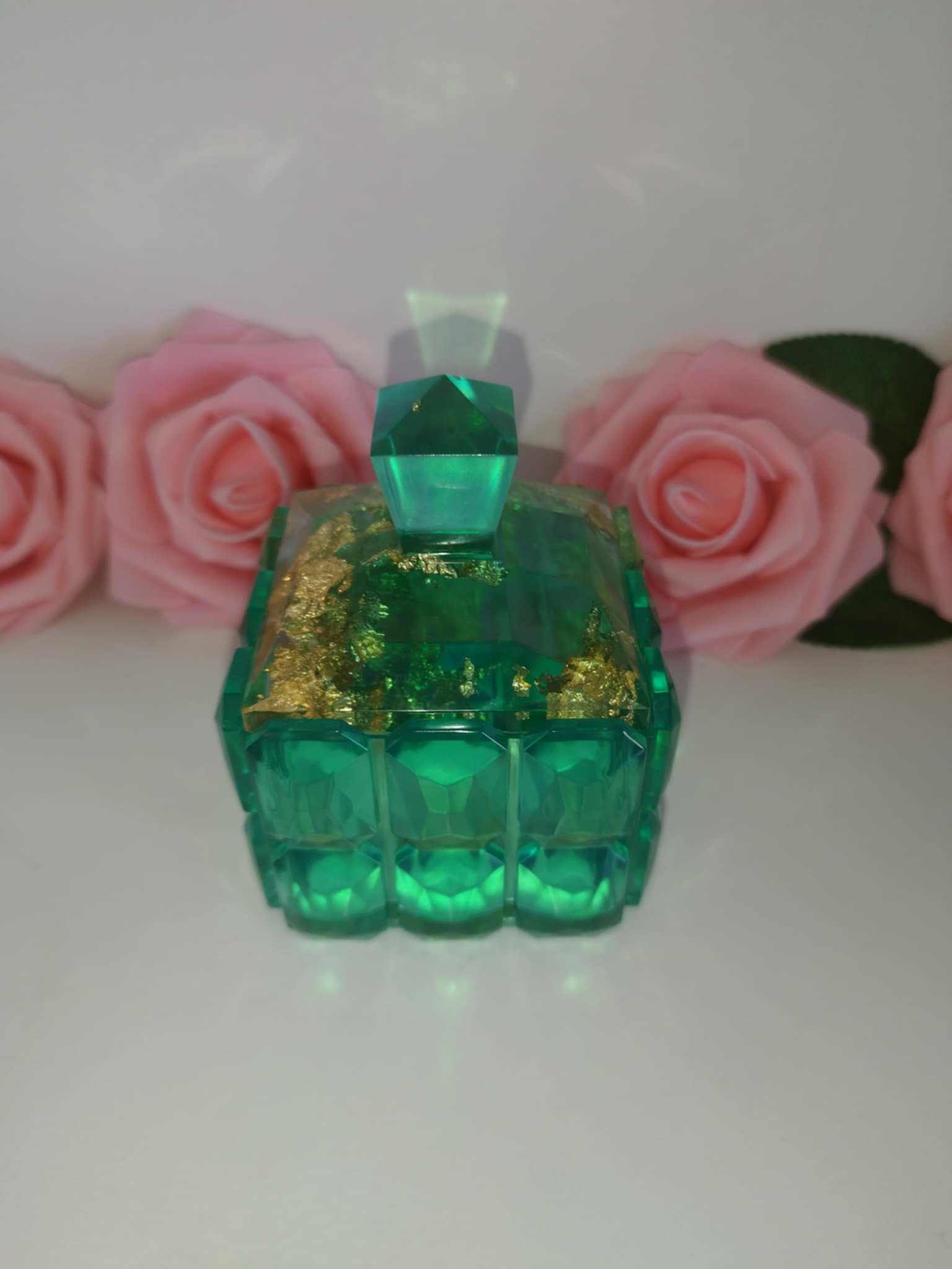 6,5 cm de coté sur 8,5 cm environ de hauteur couvercle compris
