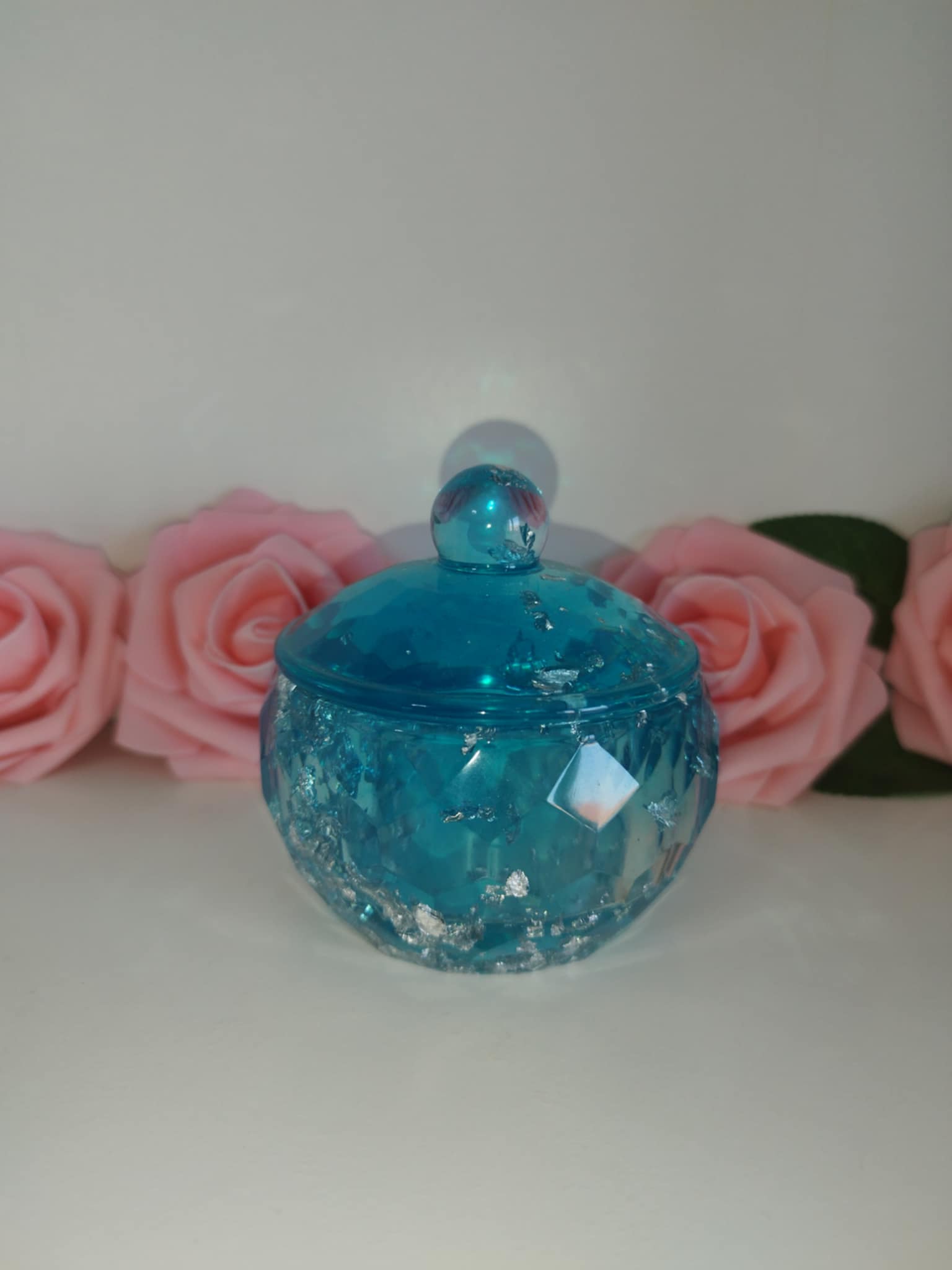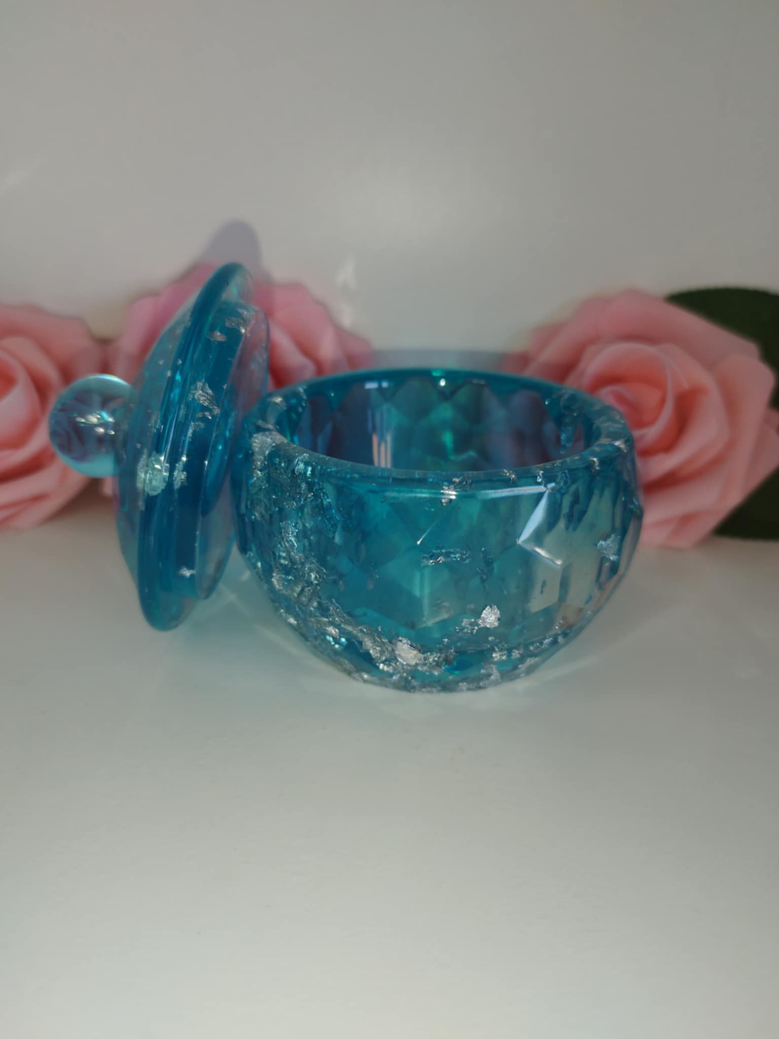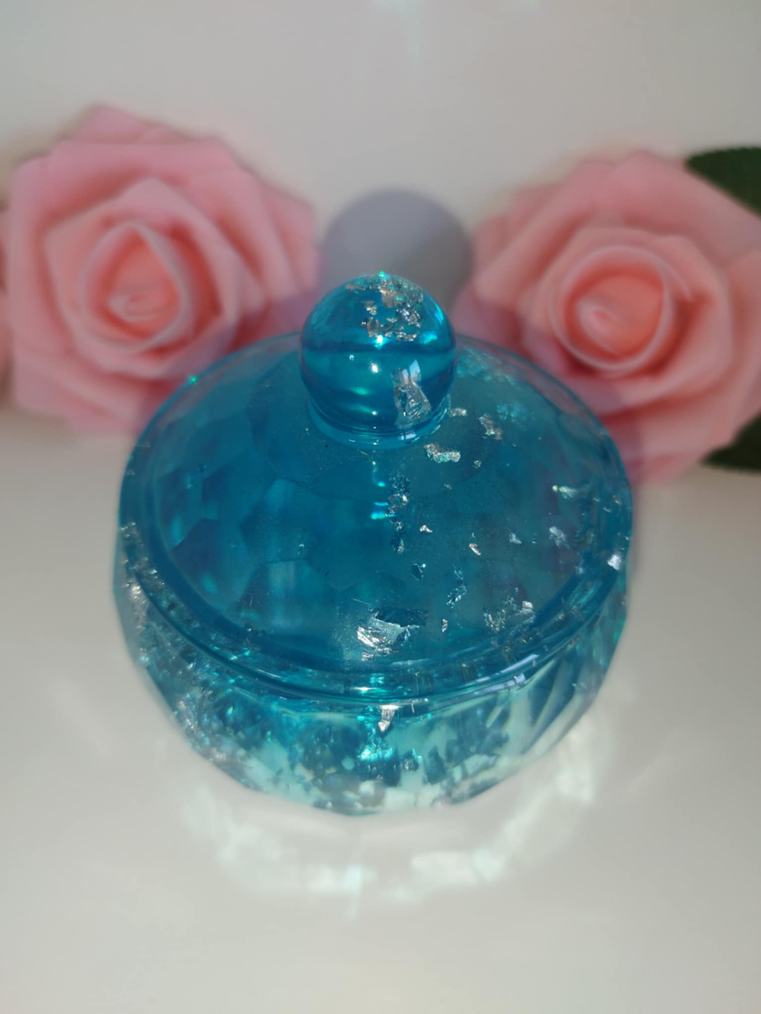 Boite en résine époxy à reflet octogonal bleue et feuille d'argent