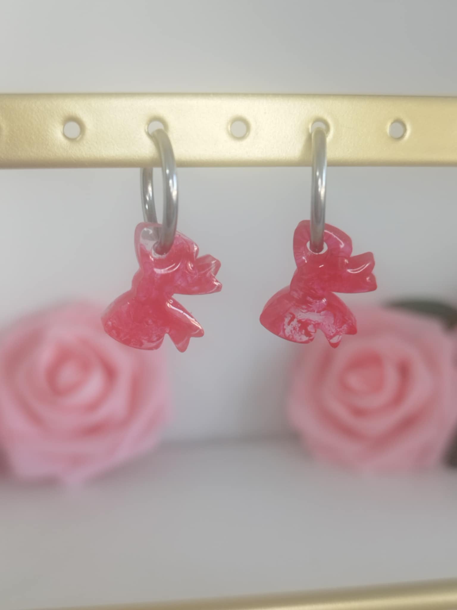 Paire de pampilles Nœuds rouges transparentes (vendues sans anneaux).